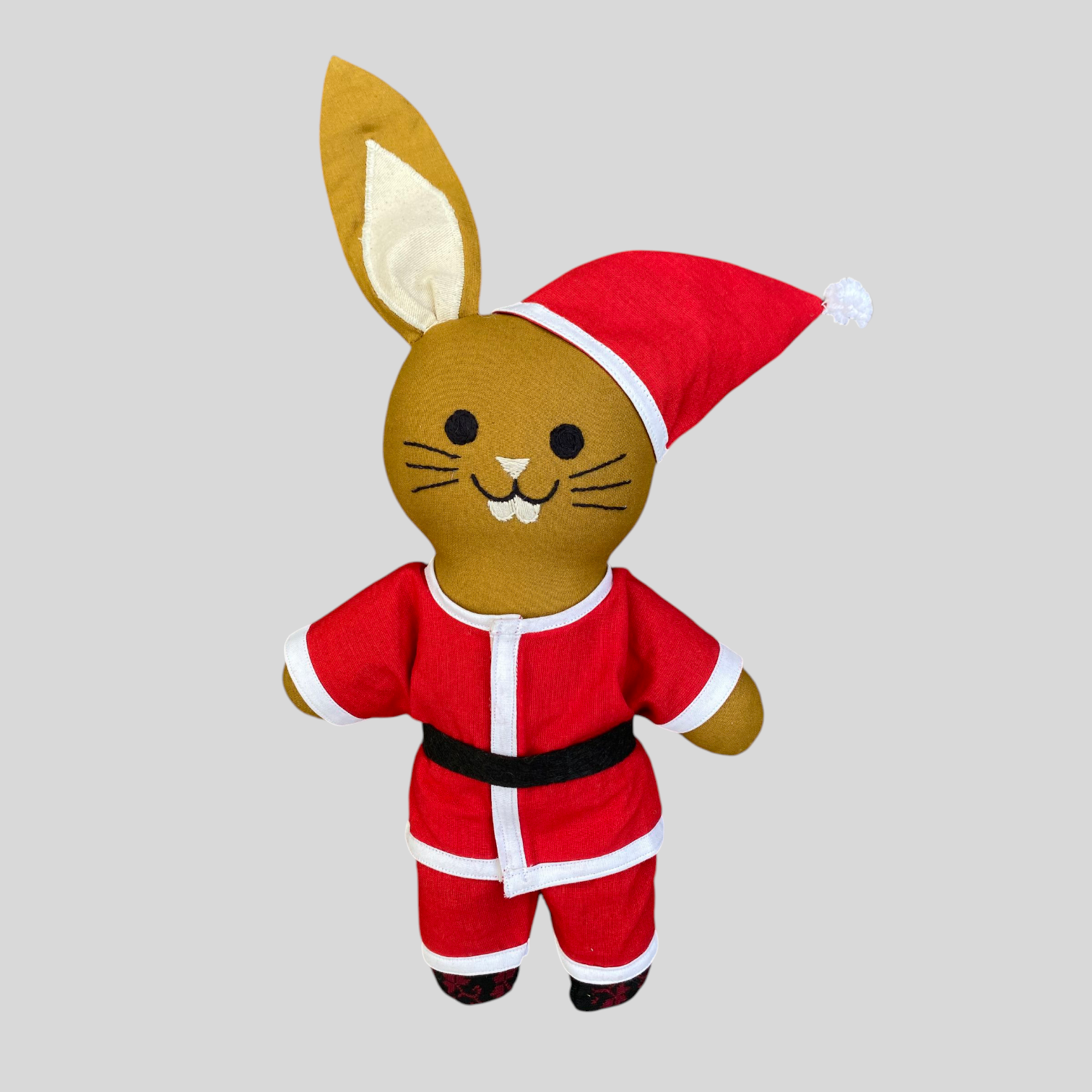 Soft, huggable, and full of character, Santa Bunny makes the perfect holiday gift, festive décor piece, or keepsake for children and adults alike. Crafted using upcycled cotton fabric and filled with soft polyfill, he’s gentle, safe, and made sustainably with care.